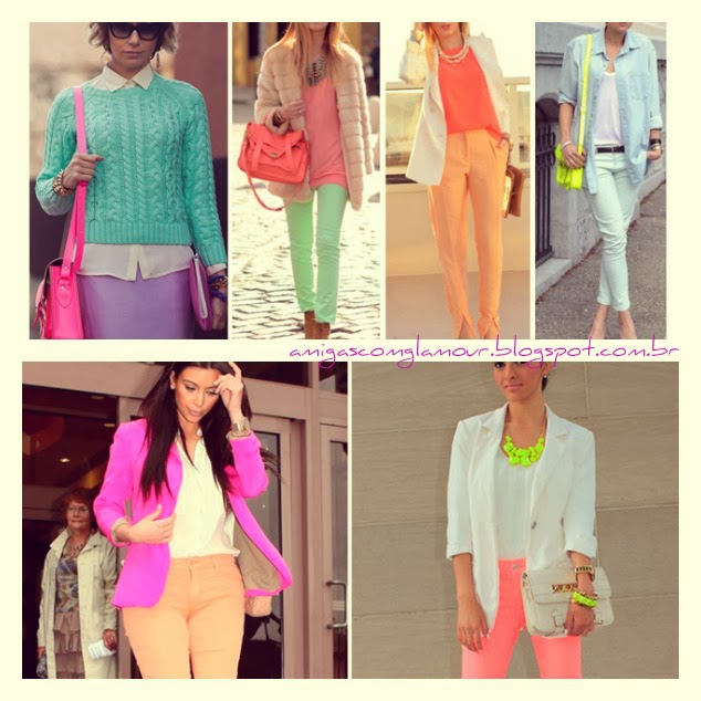 Olá pessoal, vim mostrar algumas combinações que estão super em alta para primavera-verão desse ano. Que consiste na combinação de cores candy colors e o neon, deixando o visual bem cara de praia.